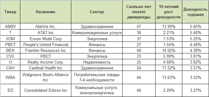 - Практическая таблица: основные показатели дивидендных аристократов