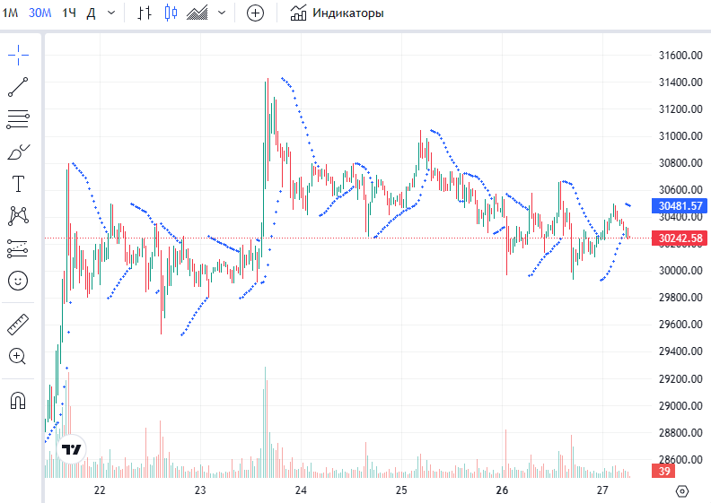 При использовании RSI трейдерам важно обращать внимание на уровни 70 и 30. Значения выше 70 указывают на возможную перекупленность актива, и возможен разворот вниз, а значения ниже 30 свидетельствуют о перепроданности и вероятносм росте цены.