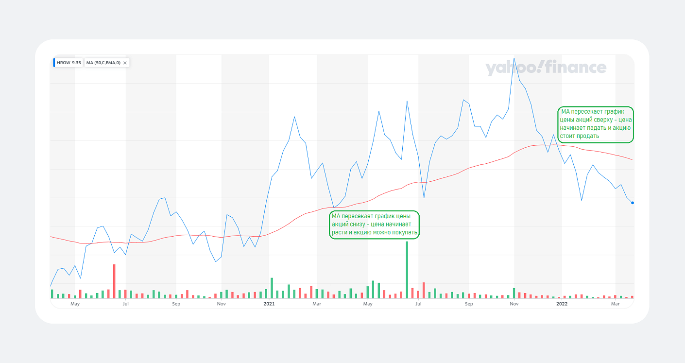 Скользящие средние — это технический индикатор, который рассчитывается на основе средней цены за определённый период времени. Название «скользящая» связано с тем, что по мере прохождения временного интервала значение средней постоянно обновляется, «скользя» по графику.
